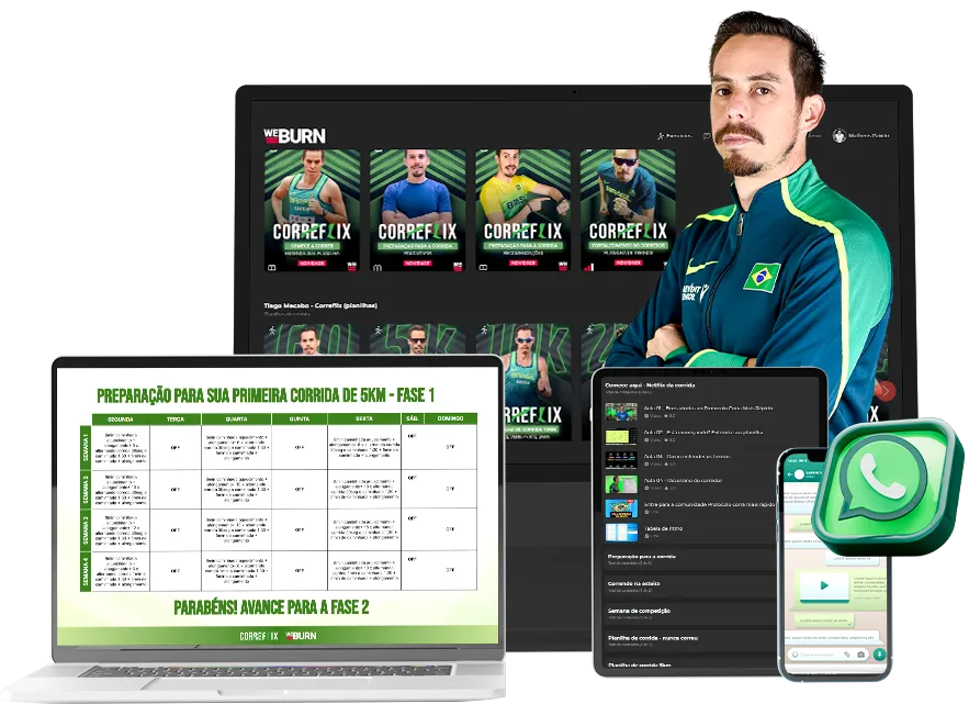 Se você começar o Correflix ainda hoje, você também terá acesso a todo o aplicativo da Weburn, a melhor plataforma de conteúdos de treino, fitness e saúde do Brasil. Você e toda a sua família poderão treinar e cuidar da saúde juntos.